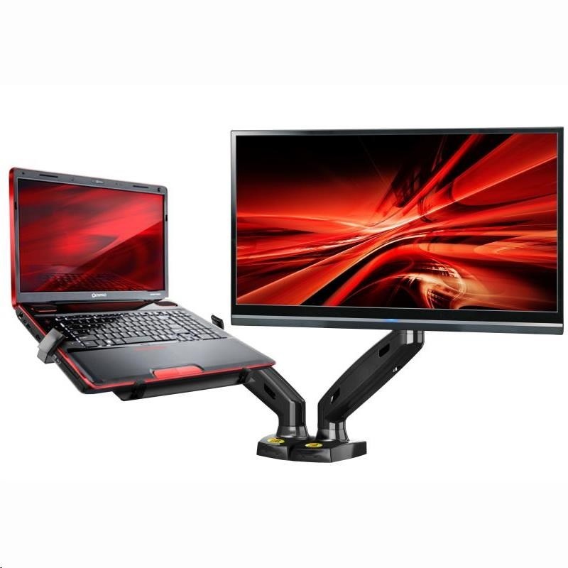 Držák na notebook a monitor umožňující výškové a délkové nastavení, náklon, otáčení do stran