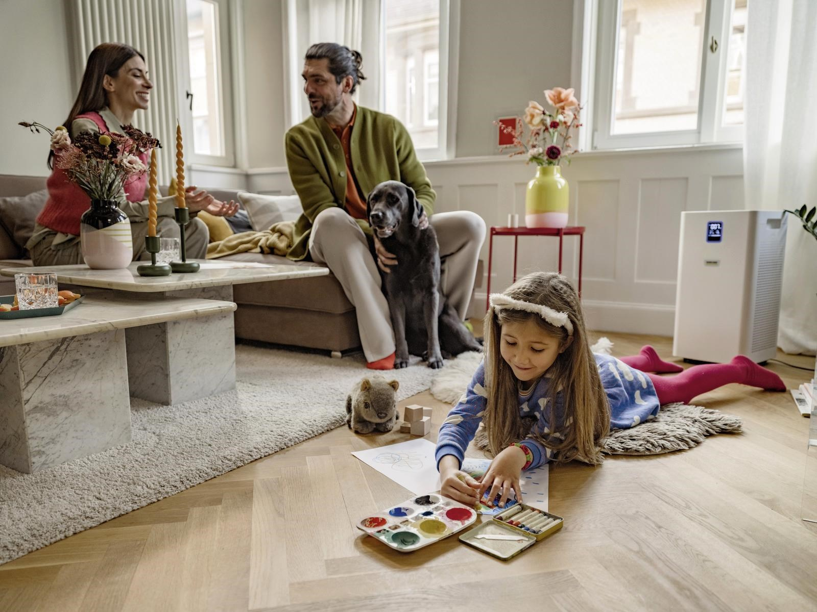 Ideálna čistička vzduchu pre väčšie miestnosti, obývačky a pracoviská: Čistička vzduchu AF 50 zbavuje vzduch v miestnosti alergénov, znečisťujúcich látok a choroboplodných zárodkov pomocou viacvrstvového filtračného systému. Medzi ďalšie funkcie patrí náplň s aktívnym uhlím, displej pre alfanumerické zobrazenie kvality vzduchu v časticiach PM2,5 v µg/m3 a pre zobrazenie kvality vzduchu vo forme farebného kódu, teploty a relatívnej vlhkosti. Čistička vzduchu je vynikajúcou voľbou aj vďaka funkcii časovača, detskej poistke, nočnému režimu a veľmi tichému prevádzke, ako aj účinnosti filtra 99,95 % pre častice veľkosti 0,3 µm a kvalitnému laserovému senzoru pre automatický režim. To znamená, že automatický režim a úroveň výkonu sa automaticky prispôsobia úrovni znečistenia ovzdušia. Filter má navyše životnosť približne jeden rok v závislosti od úrovne znečistenia ovzdušia a intenzity používania.