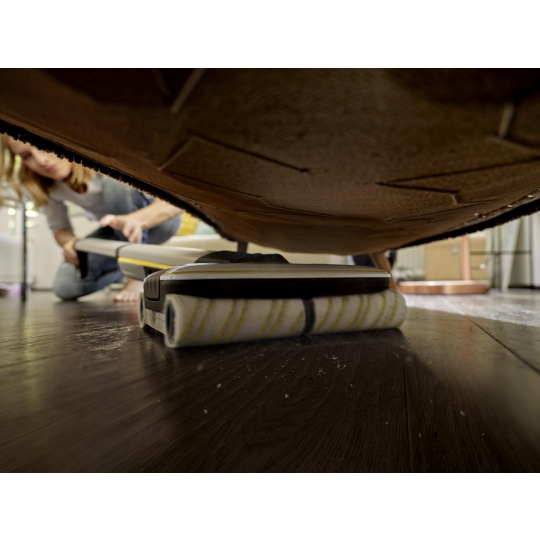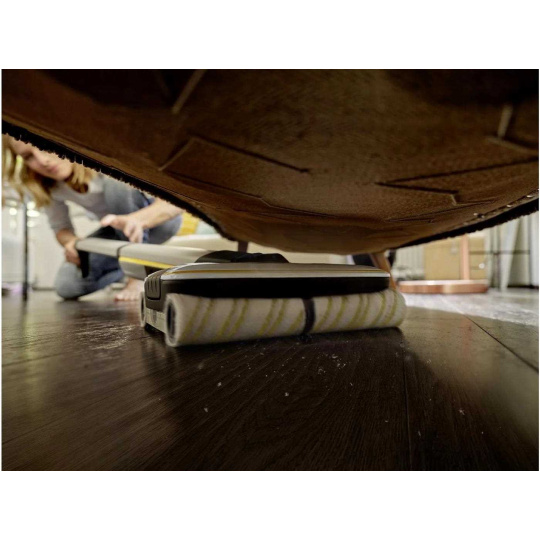 ** Čistič podláh Kärcher skracuje dobu upratovania až o 50 %, pretože bežné nečistoty z domácnosti je možné odstrániť z tvrdých podláh v jedinom kroku, bez potreby vysávania pred vytieraním.