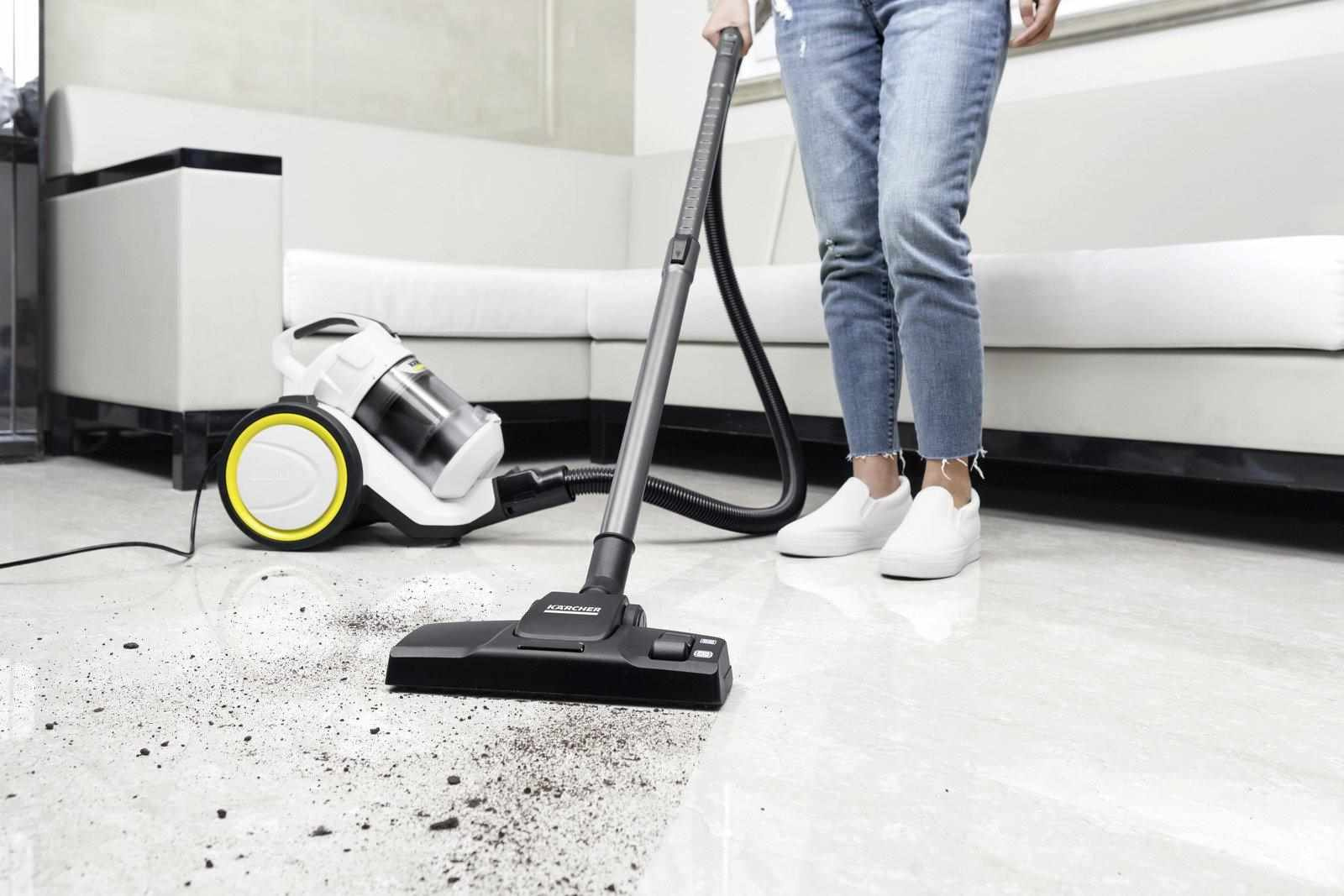 Skutočne kompaktný bezvreckový vysávač, to je Kärcher VC 3. Disponuje výkonom 700 W a multicyklónovou technológiou. Priehľadná nádoba na prach má objem 0,9 litrov a umožňuje rýchlu vizuálnu kontrolu. Vysávač je ideálny pre menšie byty a domácnosti. Použitie je vhodné pre všetky typy podláh vrátane kobercov. Šterbinová hubica pomôže s upratovaním odlehlých kútov a ťažko dostupných miest. Hlavica s mäkkým kefou je vhodná pre jemné povrchy a čalúnenie.