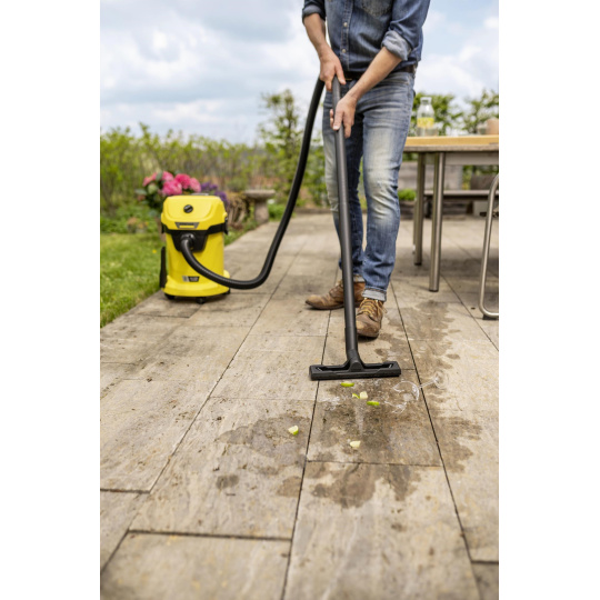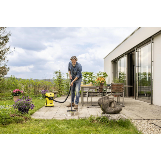 Vysávanie, ktoré nepozná hranice: batériový vysávač na mokré a suché vysávanie WD 3-18, ktorý je súčasťou 18 V batériovej platformy Kärcher Battery Power a ponúka maximálnu flexibilitu, kompaktný dizajn a slobodu pohybu. Prístroj dokonale spája 2 metre dlhý sací hadicu a klipsovú podlahovú hubicu a dokáže okamžite odstrániť mokré, jemné aj hrubé nečistoty. Prístroj je ďalej vybavený robustnou a nárazuvzdornou plastovou nádobou o objeme 17 litrov, jednofunkčným kartušovým filtrom a tiež fleeceovým filtračným vreckom. Úložisko saciej hadice šetrí miesto; jednoducho ju zavesíte na hlavu zariadenia. Medzi ďalšie funkcie patrí praktická funkcia fukaru pre oblasti, kde nie je možné vysávanie, odkladací priestor na náradie a drobnosti, otočný spínač pre jednoduché zapnutie a vypnutie prístroja, ergonomicky tvarované držadlo pre prenášanie a tiež "Pull & Push" uzamykací systém, ktorý umožňuje jednoduché otváranie a zatváranie nádoby. Parkovacia poloha na nárazníku umožňuje rýchle a pohodlné uloženie trubíc a podlahovej hubice pri krátkej prestávke počas práce. Batéria a nabíjačka sú súčasťou balenia.