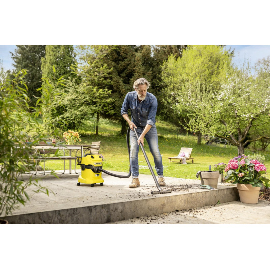 Výkonný a prenosný: 36voltový motor vysávača na mokré a suché vysávanie WD 4-18 S Dual Battery je napájaný dvoma 18voltovými batériami, ktoré zabezpečujú výkonné satie a maximálnu voľnosť pohybu pri vysávaní. Akumulátorový vysávač na mokré a suché vysávanie je súčasťou 18V batériovej platformy Kärcher Battery Power a počas okamihu odstráni mokré, jemné aj hrubé nečistoty. Vysávač má robustnú 20litrovú plastovú nádobu, 2,2metrovú saciu hadicu, klipovú podlahovú hubicu, vláknový filtračný vrecúško a praktický plochý sklápací filter, ktorý je vhodný pre nepretržité mokré a suché vysávanie bez nutnosti výmeny filtra. Vďaka patentovanej technológii vyberania možno filter vytiahnuť a vyčistiť počas niekoľkých sekúnd - bez kontaktu s nečistotami. Tam, kde nie je možné vysávať, prichádza na slovo funkcia fúkača. Úložisko saciej hadice šetrí miesto - jednoducho ju bezpečne zavesíte na hlavu prístroja. Rúry a podlahová hubica sa tiež rýchlo a pohodlne uloží na nárazník. K ďalším funkciám patrí ergonomická rukoväť pre prenášanie a uzávery systém „Pull & Push“ pre jednoduché otváranie a zatváranie nádoby. Batéria a nabíjačka sú súčasťou balenia.