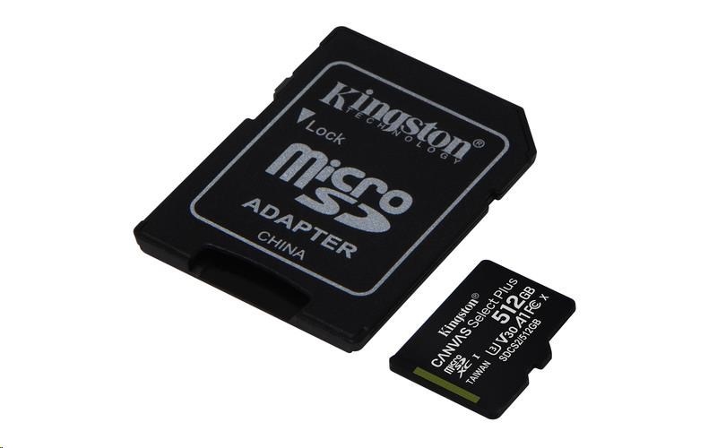 Karta Kingston 512GB micSDXC Canvas Select Plus 100R A1 C10 + adaptér SD
