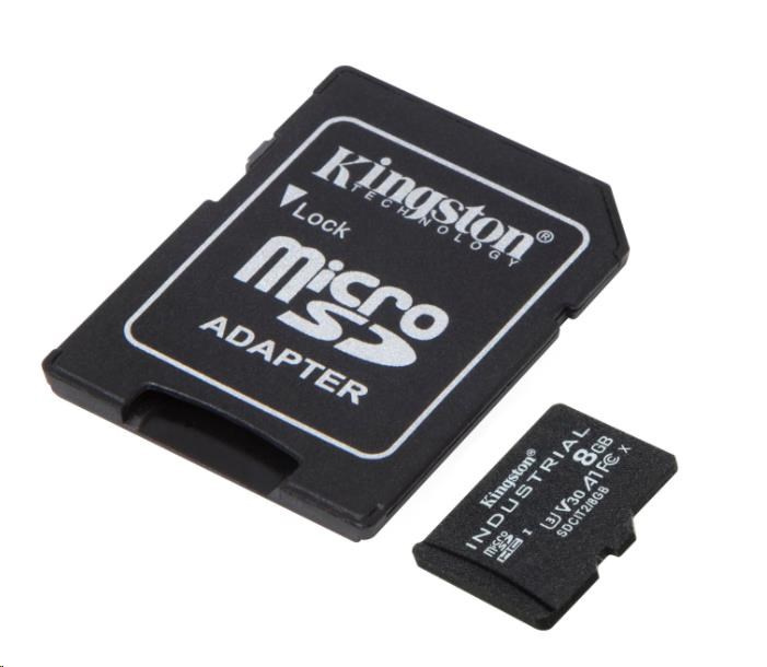 Karta Kingston 8GB microSDHC Industrial C10 A1 pSLC + adaptér SD