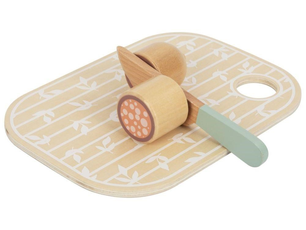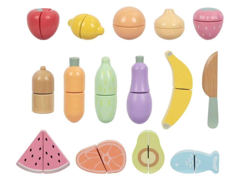 Sada drevených krájacích potravín uložená v praktickom a ľahko prenosnom boxe 3v1 umožní deťom pripraviť hostinu doma aj na návšteve. Krájacie ovocie, zeleninu a ďalšie potraviny môžu deti pomocou dreveného noža krájať (porciovať) na polovice a pomocou suchého zipsu polovice opäť spájať. S krájacími potravinami si deti vyskúšajú krájanie bezpečným detským spôsobom a zdokonalia svoje zručnosti.