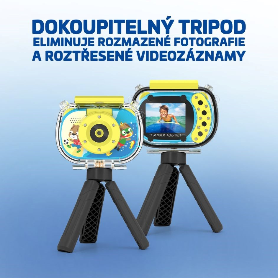 Akčná detská kamera vtiahne deti aj mladistvých do kreatívneho sveta. Môžu s jej pomocou zaznamenávať najrôznejšie dobrodružstvá, a to ako formou videa v rozlíšení 1080p, tak aj fotiek v rozlíšení 8 Mpx. Vodotesné puzdro im dokonca umožňuje zhotovenie záberov z podvodného sveta až v hĺbke 10 metrov. Výklopná šošovka sa prispôsobí každému nápadu malého tvorcu, ktorý prostredníctvom selfie kamery môže byť súčasťou svojho diela.