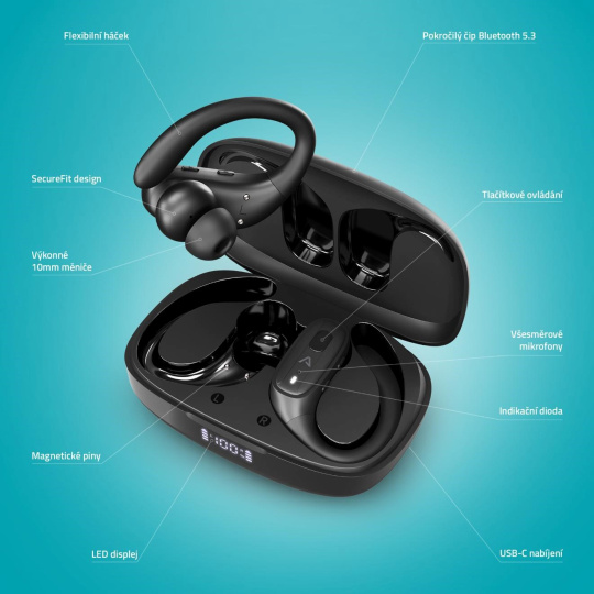LAMAX AirCore1 sú športové in-ear slúchadlá navrhnuté pre všetkých, ktorí chcú slobodu pohybu a hudbu vždy pri sebe. Flexibilné uchytenie okolo uší drží pevne aj pri náročnom tréningu, zatiaľ čo ergonomický tvar a ľahká váha zabezpečujú, že ich takmer necítiš. Odolnosť IPX4 chráni proti potu aj dažďu, otvorený posluch ti dovolí vnímať okolitý ruch a robustná konštrukcia zvládne aj každodenné zaobchádzanie. Vďaka automatickému párovaniu sa po vybratí z puzdra okamžite pripoja k tvojmu zariadeniu a stabilný Bluetooth 5.3s podporou kodekov AAC a SBC a technológie EDR zabezpečí rýchly a stabilný prenos bez výpadkov. O čistý a vyvážený zvuk sa starajú vyladené 10 mm drivery, takže si vychutnáš každý detail. Slúchadlá navyše zvládnu až 12 hodín nepřerušeného počúvania na jedno nabitie, takže vydržia aj dlhý tréning, cestu do práce a popoludňajší relax v kuse. S kompaktným puzdrom máš navyše v vrecku celkovo až 30 hodín energie, čo znamená niekoľko dní používania bez nutnosti siahnuť po nabíjačke. Keď ale predsa dôjde šťava, nemusíš čakať, stačí len 10 minút v puzdre a počúvaš ďalšiu hodinu a pol. Displej na puzdre ti navyše vždy ukáže, koľko energie zostáva, a rýchle USB-C nabíjanie sa postará o pohodlné doplnenie kapacity. S vybavením hovorov si tiež nemusíš robiť starosti. Dva mikrofóny zabezpečujú čistý a zrozumiteľný hlas aj v rušnom prostredí a mono režim ti umožní používať jedno slúchadlo samostatne, napríklad pri telefonátoch alebo práci. LAMAX AirCore1 tak spájajú pohodlie, odolnosť, výdrž a špičkový zvuk do slúchadiel, ktoré s tebou vydržia za každej situácie.