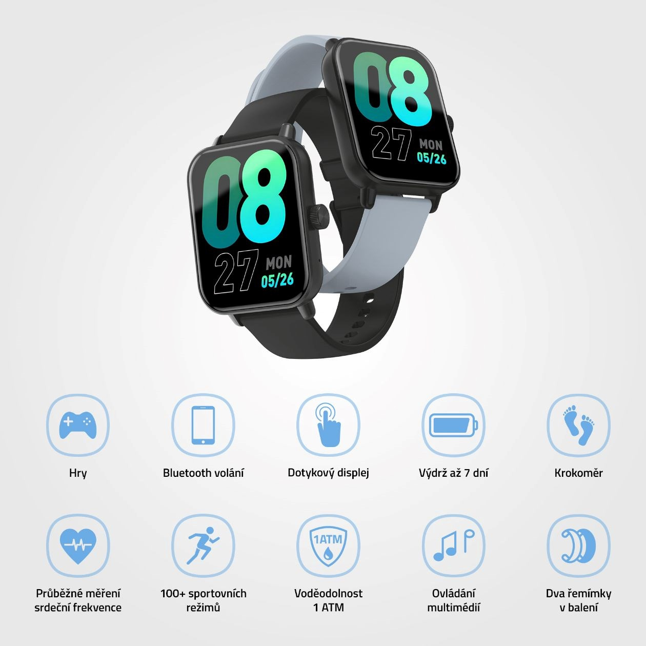 Súčasťou balenia hodiniek sú dva remienky, čierny a šedý, ktoré si môžeš striedať podľa nálady alebo outfitu.