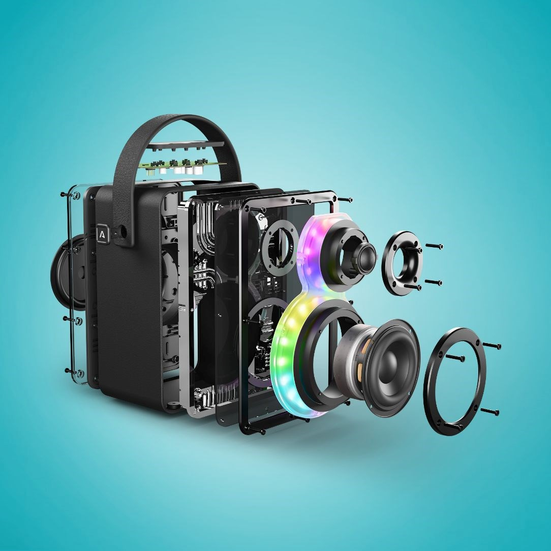 Už prvý dojem z tohto reproduktora je veľkolepý. Luxusné spracovanie, moderný Cyber dizajn, rukoväť na prenášanie a navyše intuitívne ovládanie.