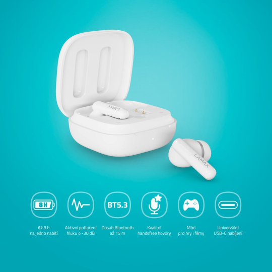 Predstav si ten najlepší zvuk, čo môžeš, a ešte mu kúsok pridaj. Potom to celý zabal do top designu a dostaneš LAMAX NeoPods1 ANC. Bezdrôtové špuntové slúchadlá s nožičkou do uší, čo majú výdrž až 8 hodín a cez Bluetooth 5.3 sa bleskovo spoja s tvojím telefónom. Taký pôžitok z počúvania si ešte nemal a gameri si ho o kus zvýšia vďaka hernému módu. Prepínanie trackov aj prijímanie hovorov zvládneš dotykom, radosť ti urobí aj kvalitný mikrofón. Fakt si užiješ dokonale čistý a vyrovnaný zvuk, AAC, SBC kodeky, ANC na potlačenie okolitého hluku a Transparency mode, čo zariadi zároveň bezpečné počúvanie. Cestuj, športuj alebo napríklad pracuj v rytme a so štýlom.