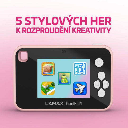 Prirodzenú detskú zvedavosť a kreativitu treba podporovať, preto prichádza LAMAX PixelKid1. Detský fotoaparát prispeje k rozvoju talentu malých fotografov, ktorí ho užijú na výletoch, rodinných oslavách alebo napríklad školských akciách. Okrem fotenia v rozlíšení 8 Mpx, zvláda foťák aj vytvorenie video záznamu vo Full HD a deťom ponúka aj päť rôznych hier na zabavenie, keď čakajú na záber. Pocit profesionality dodá menším aj väčším fotografom pribalený tripod a možnosť použitia niekoľkých filtrov a efektov na ozvláštnenie fotiek. Cool design v ružovom alebo modrom prevedení si dieťa okamžite zamiluje, a obzvlášť menšie ratolesti ocenia parádne silikónové ochranné puzdro s dinosaurom. Vlastný osobitý štýl potom foťáku dodajú nalepením samolepiek, ktoré nájdu v balení. Všetky záznamy vrátane autoportrétov zo selfie kamery sa ukladajú na microSD kartu. A ešte jednu šikovnú vlastností foťák vyniká, zvláda prehrávať MP3. Dieťa tak zaujme a zabaví po všetkých stránkach.