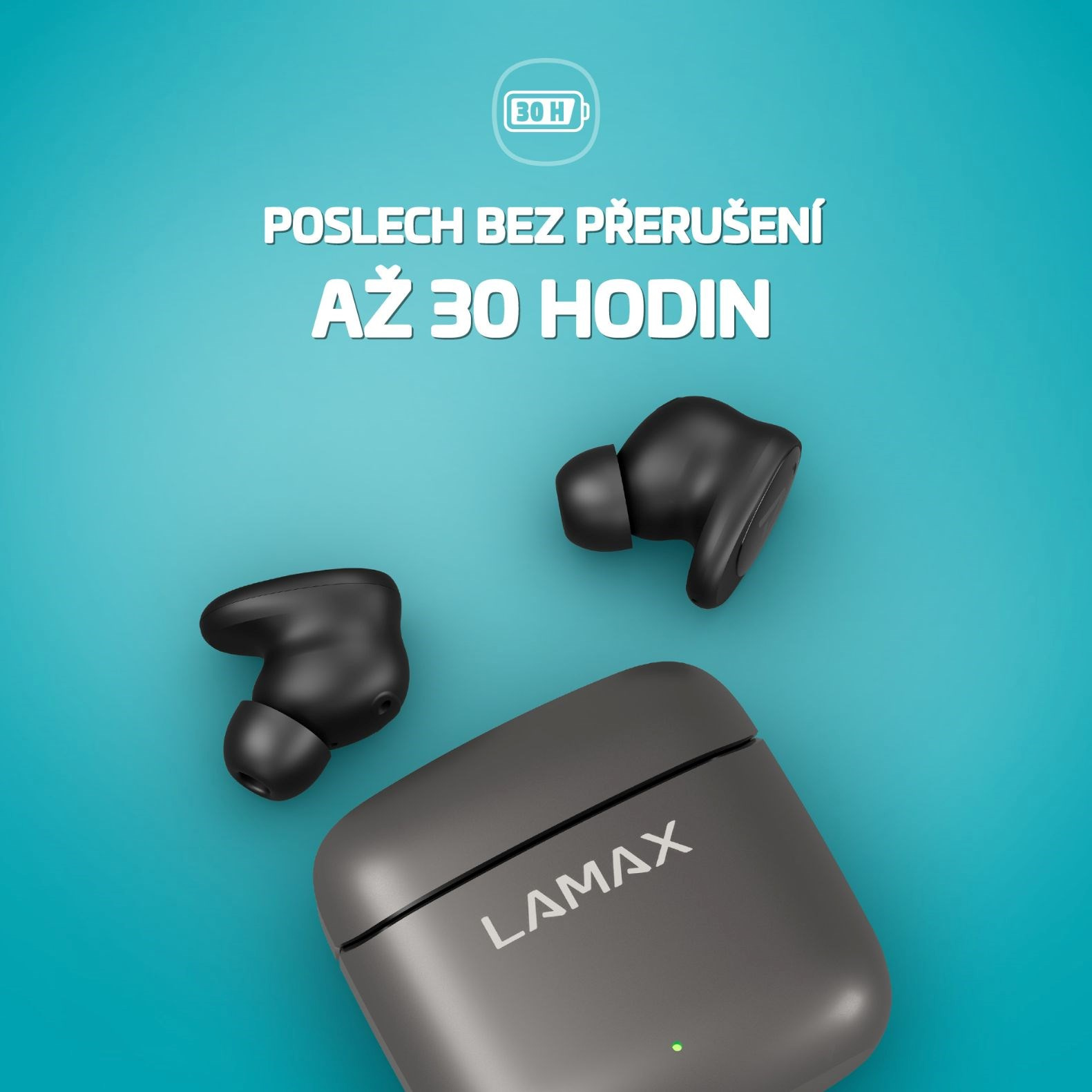 Špunty do uší a si v inom svete, bez hluku z MHD alebo diskutujúcich kolegov v práci. LAMAX SteelDots3 ANC aktívne potlačí okolité zvuky, nech si môžeš užívať svoj nadupaný playlist alebo obľúbené podcasty. Kontakt s realitou ale udržuje transparentný režim pre tvoju bezpečnosť. Čistý a vyrovnaný zvuk každého tónu ešte podporuje kompatibilita s kodekmi AAC a SBC. Tak isto mikrofón je kvalitka, takže pri volaní alebo videohovoroch ťa všetci jasne počujú. Zabudni na rozmotávanie káblov, Bluetooth 5.3 ťa okamžite automaticky pripojí. Ovládanie zvládneš bez návodov, je fakt jednoduché, dotykom vyriešiš všetko. Keď si mákneš pri športe a pot tečie prúdom, krytie IPX5 si s tým hravo poradí. Všetky tieto výhody si môžeš užívať až 8 hodín na jedno nabitie a ešte ďalšie máš v pevnom kovovom dobíjacom púzdre, takže suma sumárum až 30 hodín zábavy. Potom šťavu doplníš cez USB-C. Si ready na túto výzvu?