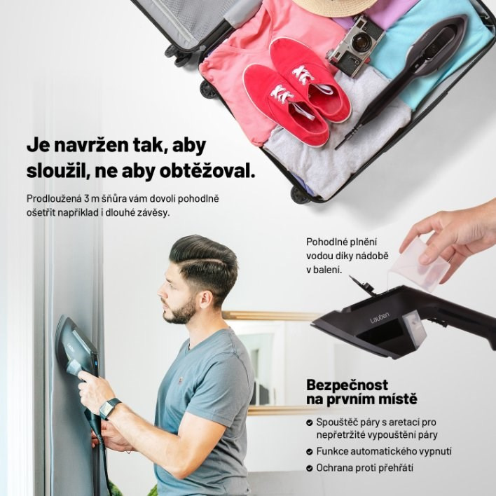 Naparovač je navrhnutý tak, aby sa ľahko balil aj na cesty. To všetko pri zachovaní silného výkonu 1 950 W.