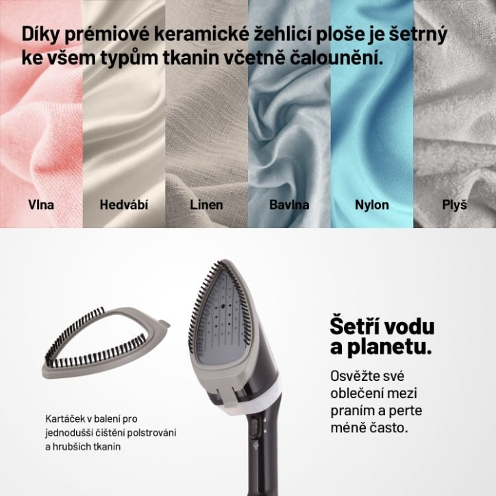 Táto naparovač kombinuje výkon žehličky so silou pary, aby okamžite vyhladil záhyby na oblečení a čalúnení a zároveň zničil 99,9 percent baktérií. Oživí a odstráni zápach aj niekoľko dní noseného oblečenia, ktoré nemusíte tak často prať. To všetko pomocou čistej vody, bez chemikálií.