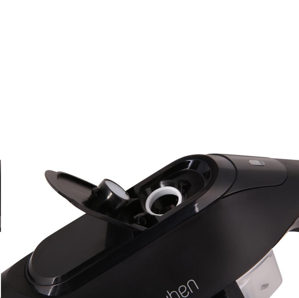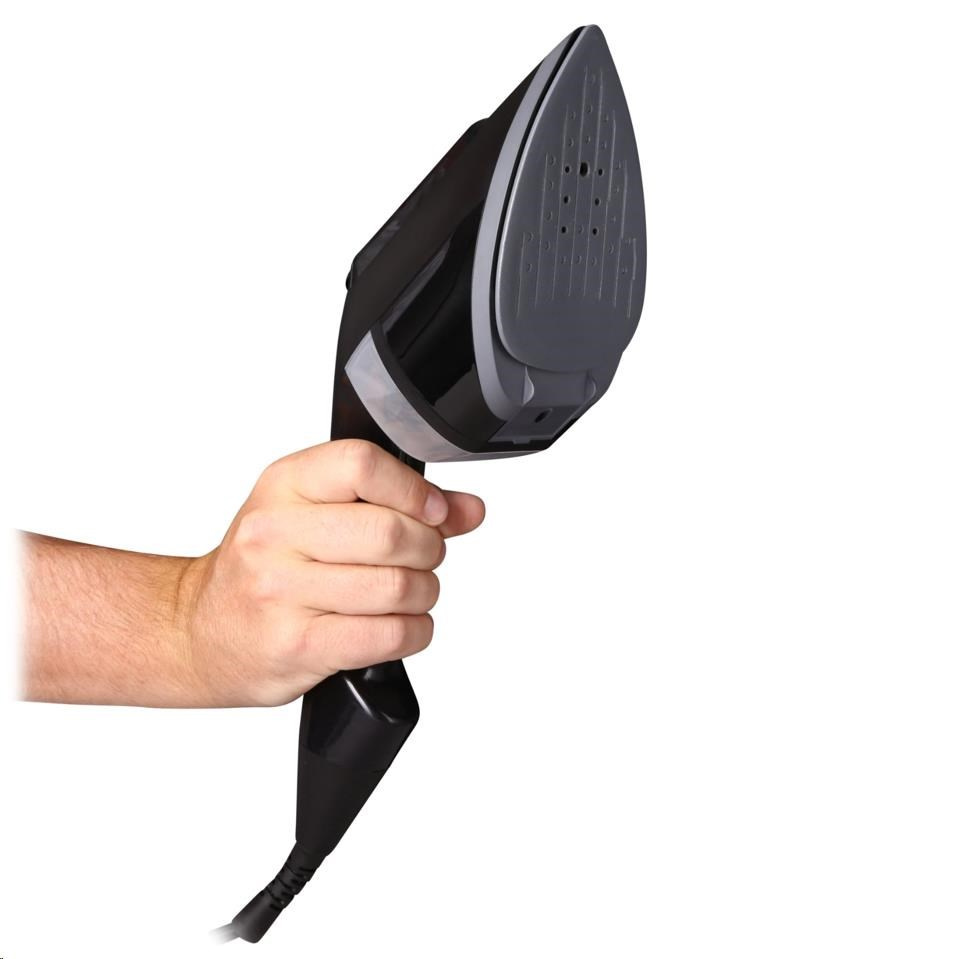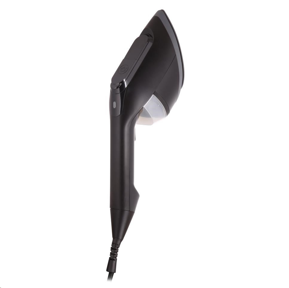 Matný čierny povrch v kombinácii s keramickou žehliacou plochou do špičky vyzerajú štýlovo, ale sú predovšetkým funkčné. Vďaka špičatému tvaru sa pohodlne dostanete napríklad ku golierom či medzi gombíky.