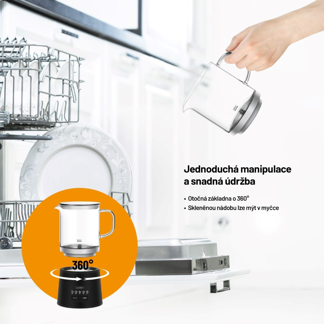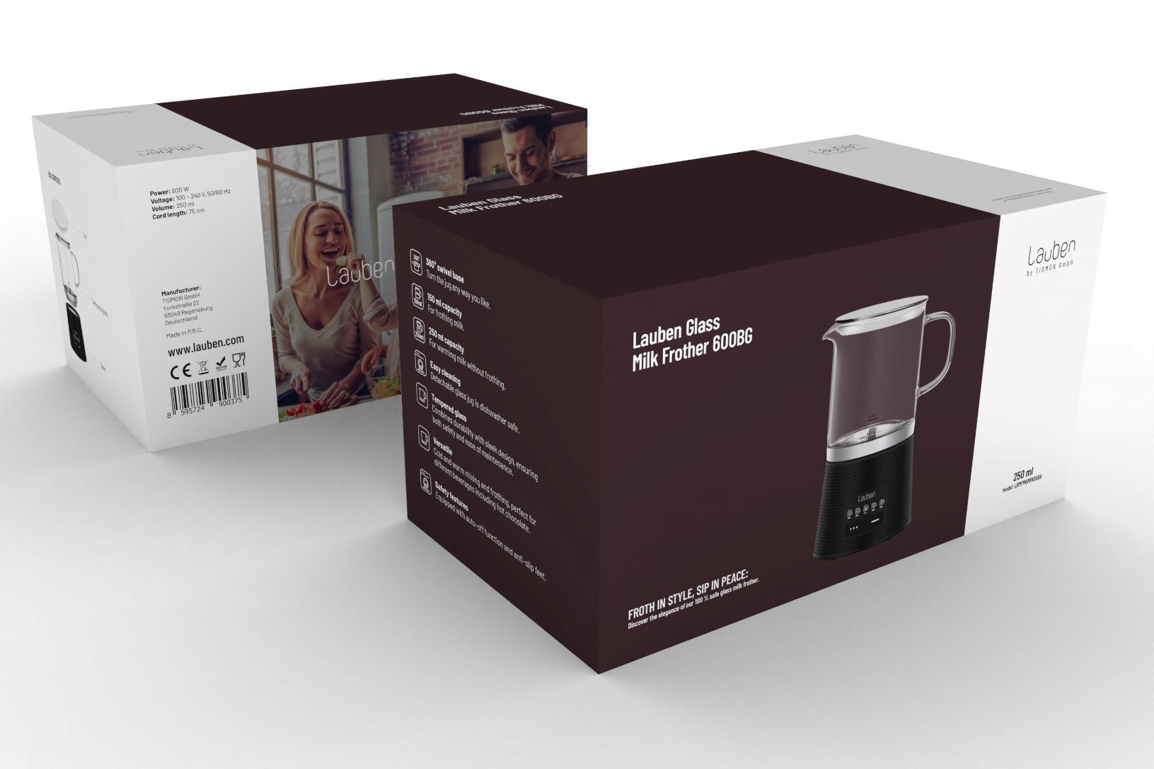 Nadšenci nápojov s dokonale našľahaným mliekom si teraz vďaka napäňovaču Lauben Glass Milk Frother 600BG vychutnajú aj v domácom prostredí či v práci mliečnu penu ako od baristu. Sklenená nádoba umožňuje sledovať proces prípravy, je zdravé a ľahké na údržbu, stačí umyť alebo vložiť do umývačky. Údržbu uľahčuje aj odnímateľné miešatko. Pre lepšiu manipuláciu má základňa schopnosť otáčať sa o 360°. Pomocou variácií režimov prístroj zvláda teplé aj studené našľahanie či miešanie a špeciálny režim vykúzli horúcu čokoládu. So svojimi baristickými schopnosťami nevyrušíte spiacu rodinu ani kolegov v kancelárii, pretože prevádzka napäňovača je veľmi tichá. Tento praktický dizajnový kúsok ohreje 250 ml a napení 150 ml mlieka. Protisklzové nôžky držia prístroj na mieste, k bezpečnosti prispieva aj funkcia automatického vypnutia.