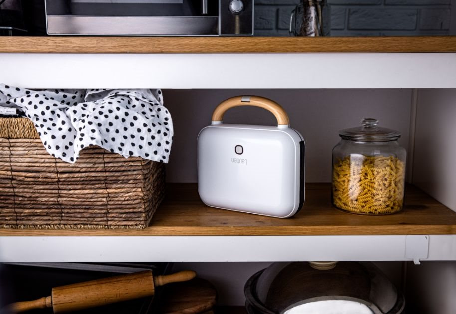 Lauben Sandwich Maker vás poteší aj svojim minimalistickým dizajnom. Off white prevedenie s dreveným dekorom sa hodí takmer do každej kuchyne. Dizajn sendvičovača je zároveň funkčný. Držadlo je vyrobené technológiou Cool Touch, takže sa o neho nikdy nespálite a protisklzové nožičky zase zabezpečia, že počas prípravy zostane prístroj na svojom mieste.