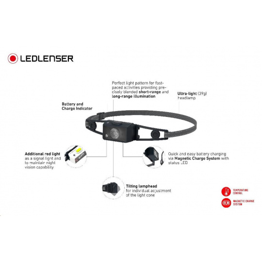 Moderný vzhľad, naklápacia hlava, dodatočné červené svetlo a praktický magnetický systém nabíjania – to všetko ponúka moderná bežecká čelovka LEDLENSER NEO1R.