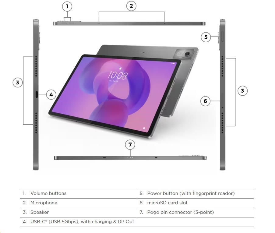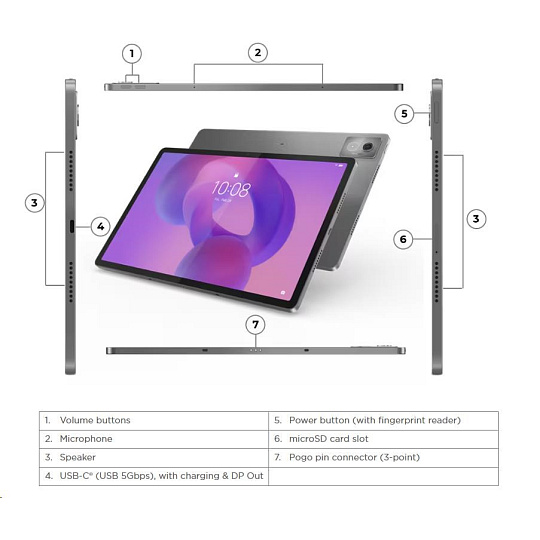 | Standartné porty | 1x USB-C® (USB 5Gbps / USB 3.2 Gen 1), with charging / DP-Out / Audio 1x microSD card slot 1x Pogo pin connector (3-point) |