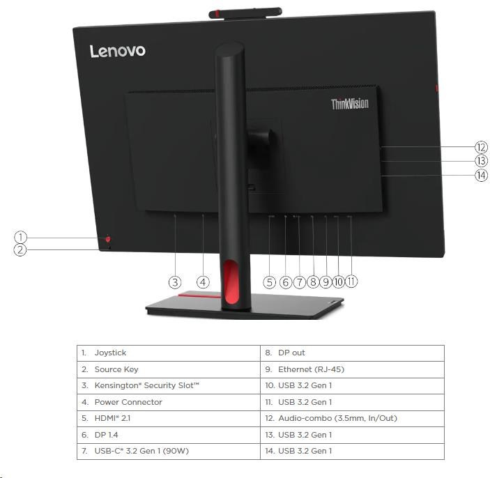 LENOVO LCD ThinkVision T27hv-30 - 27" IPS,matný,16:9,2560x1440,178/178,6ms,300cd,1000:1,HDMI,DP,PIVOT,VESA,3Y