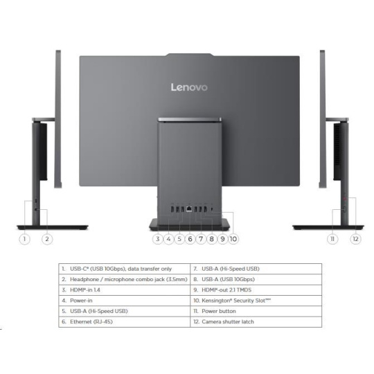 | Zadné porty | 1x USB-A (USB 10Gbps / USB 3.2 Gen 2) 2x USB-A (Hi-Speed USB / USB 2.0) 1x HDMI®-in 1.4 1x HDMI®-out 2.1 TMDS 1x Ethernet (RJ-45) 1x power connector |