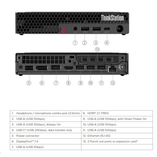 | Predné porty | 1x USB-C® (USB 20Gbps / USB 3.2 Gen 2x2), data transfer only 1x USB-A (USB 10Gbps / USB 3.2 Gen 2), Always On 1x USB-A (USB 10Gbps / USB 3.2 Gen 2) 1x headphone / microphone combo jack (3.5mm) |
