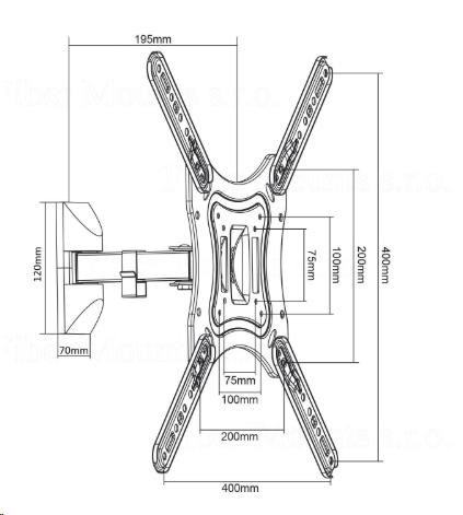 Technické údaje: nosnost 30kg podporuje VESA standardy 75x75 až 400x400 doporučená úhlopříčka televizoru 13-55" otáčení do stran +/- 35° náklon dole i nahoru +/- 20° nastavitelná vzdálenost od zdi 75-195mm úchytka na fixaci kabeláže ocelová konstrukce barevné provedení černé záruka 3 roky Držák Fiber Mounts DT758 podporuje VESA standardy: VESA 75x75 VESA 100x100 VESA 200x100 VESA 200x200 VESA 300x200 VESA 300x300 VESA 400x200 a 200x400 VESA 400x300 a 300x400 VESA 400x400 Tento držák je vhodný pro zavěšení všech typů a značek televizorů, které podporují kterýkoliv z výše uvedených VESA standardů a mají hmotnost do 30kg. Velikost - úhlopříčka televizoru není podstatná..