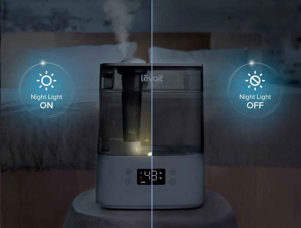 Zvlhčovač vzduchu Levoit Classic300S Smart je možné ovládať priamo na prehľadnom podsvietenom LED displeji alebo aj cez aplikáciu na chytrých zariadeniach Apple alebo Android. Alebo si ho môžete dokonca pripojiť do svojho Smart Home a ovládať hlasom cez Google Assistant alebo Amazon Alexa. Senzor vlhkosti zobrazuje vlhkosť v reálnom čase av automatickom režime tak okamžite reaguje na zmeny vlhkosti. Vždy by sa malo jednať o rozmedzie medzi 40 % až 60 %. Cez aplikáciu si môžete informácie kontrolovať alebo si svoje režimy plánovať.