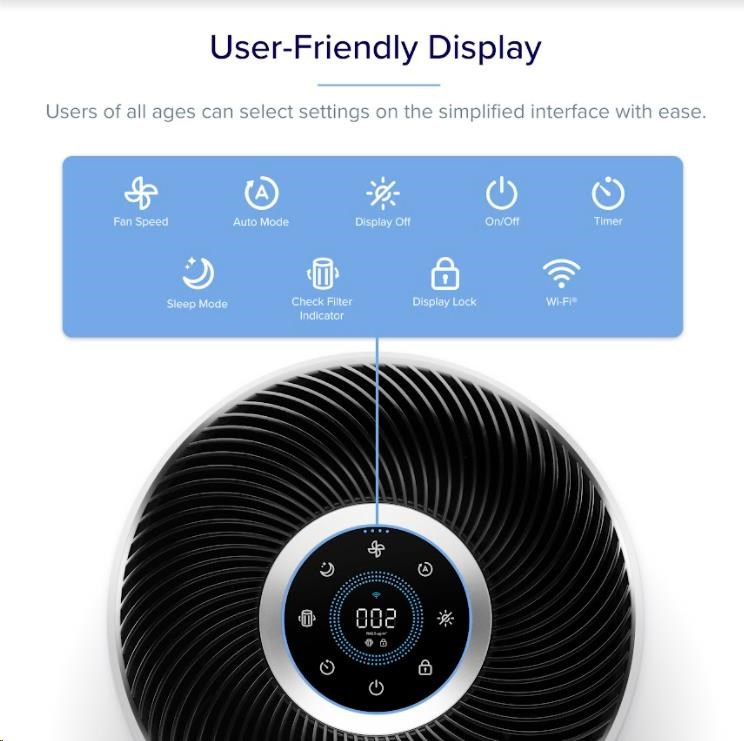 Šikovnú čističku vzduchu Levoit Core 400S Smart môžete ovládať priamo na displeji alebo aj cez aplikáciu určenú pre smartphony a tablety Android a Apple. V aplikácii si môžete nastaviť rôzne režimy, výkon, sledovať proces čistenia, úroveň znečistenia vzduchu alebo stav, v akom sa filter nachádza.