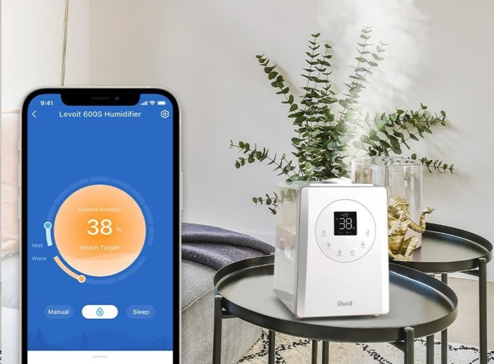 Zvlhčovač vzduchu Levoit LV600S Smart je možné ovládať priamo na prehľadnom podsvietenom LED displeji alebo aj cez aplikáciu na chytrých zariadeniach Apple alebo Android. Alebo si ho môžete dokonca pripojiť do svojho Smart Home a ovládať hlasom cez Google Assistant alebo Amazon Alexa. Senzor vlhkosti zobrazuje vlhkosť v reálnom čase av automatickom režime tak okamžite reaguje na zmeny vlhkosti. Vždy by sa malo jednať o rozmedzie medzi 40 % až 60 %. Cez aplikáciu si môžete informácie kontrolovať alebo si svoje režimy plánovať.