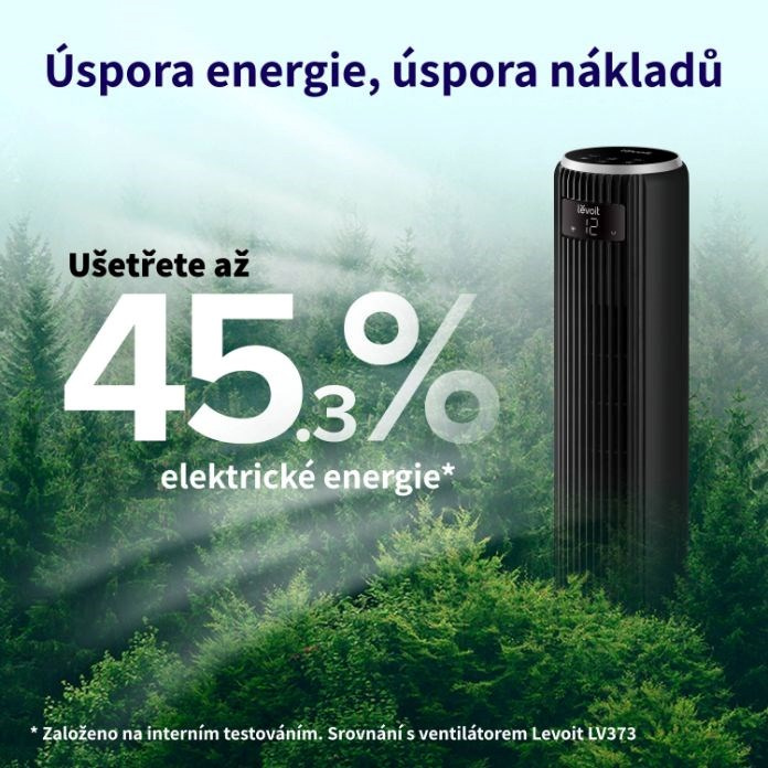 Ventilátor Levoit je navrhnutý tak, aby poskytoval najlepší výkon 24 hodín denne. Preto bolo potrebné obmedziť jeho spotrebu energie, čo sa dosiahlo použitím energeticky úsporného bezkartáčového motora. S výkonom 26 W pri maximálnych otáčkach môžete pokojne odpočívať a príroda sa vám poďakuje.
