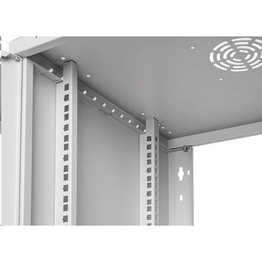 LEXI-Net Basic Nástenný rozvádzač 19" 12U 520x450, sklenené dvere, sivý Štandardne sa dodáva v rozloženom stave Hĺbka 450 mm Farba sivá RAL 7035 Materiál oceľ s práškovým nástrekom 0,8 mm Hmotnosť 11,6 kg Hmotnosť vrátane balenia 12,1 kg sklenené dvere Rozmery balenia 595 x 555 x 120 mm Vonkajšie rozmery zmontovaného rozvádzača 520 x 600 x 450 mm Krytie IP20..
