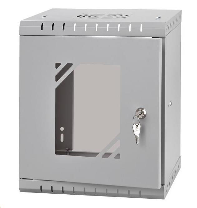 LEXI-Net 10" nástěnný rozvaděč Basic 6U 292x300, skleněné dveře, bez zad, svařovaný, šedý