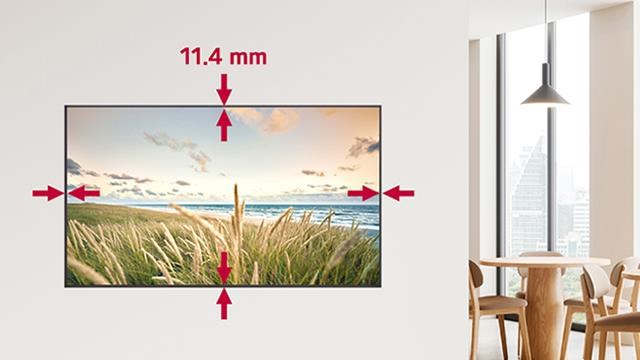 Model UH5Q, navržený s tenkými rámečky a jednoduchou správou kabelů, šetří místo. Díky speciálním skrytým napájecím vstupům jej lze pomocí tenkého držáku nainstalovat těsně ke zdi s mezerou pouhých 13,5 mm.
