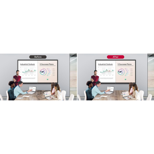 LG CreateBoard ponúka realistický dotykový zážitok vďaka pokročilej interaktívnej dotykovej technológii, ktorá umožňuje používateľom priamo pracovať s obsahom na digitálnej tabuľke. Môžete písať, kresliť, priblížiť a otáčať len pomocou prstov, čím sa stáva efektívnym nástrojom pre kreativné projekty, digitálnu spoluprácu alebo prezentácie. Interaktívna tabuľa LG navyše umožňuje bezdrôtové zdieľanie obrazovky, čo z nej robí vynikajúce riešenie pre plynulú vzdialenú spoluprácu a virtuálne stretnutia.