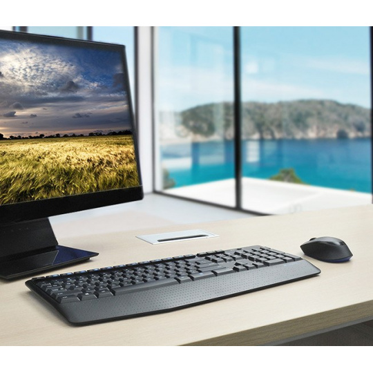 | obsah balenia | - Klávesnica, myš, - prijímač USB - 2 alkalické batérie AAA v klávesnici (predinštalované) - 1 alkalická batéria AA v myši (predinštalovaná) - používateľská dokumentácia |