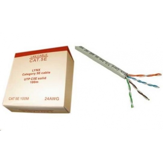 UTP kabel LYNX, Cat5E, drát, PVC, Dca, šedý, 100m