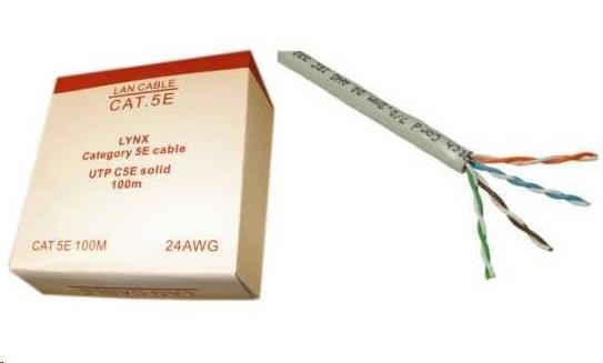 UTP kabel LYNX, Cat5E, drát, PVC, Dca, šedý, 100m