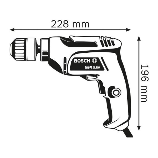Bosch GBM 6 RE vrtačka, 350 W, průměr do dřeva 15 mm, do oceli 6,5 mm, upínací sklíčidlo s ozubeným věncem