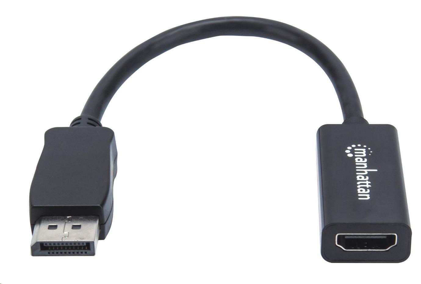 Adaptér MANHATTAN, DisplayPort, DP-Male/HDMI-Female, čierny