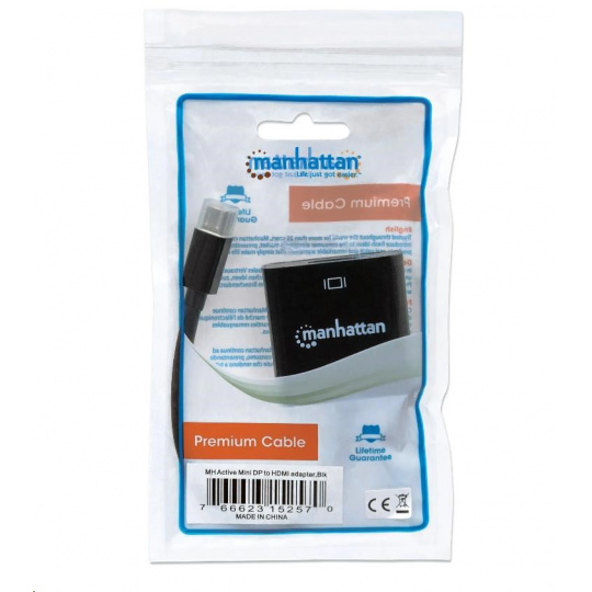 Adaptéry Manhattan Active Mini DisplayPort na HDMI umožňujú rýchle a pohodlné pripojenie medzi zdrojom médií vybaveným rozhraním Mini DisplayPort a zobrazovacím káblom HDMI. Tento aktívny adaptér prekonáva obmedzenia video/grafickej karty bez DP++ (dual-mode) a konvertuje signál na zobrazenie. Ideálne pre hry na viacerých obrazovkách, digitálne nápisy v maloobchodných displejoch, finančný trh a ďalšie aplikácie. Poniklované kontakty a úplné tienenie pomáhajú adaptérom Manhattan Active Mini DisplayPort na HDMI zabezpečiť čistý a stabilný prenos videa v multimediálnych aplikáciách UHD, v domácnostiach a kanceláriách. Odolné PVC plášte a tvarované topánky s odľahčením ťahu pomáhajú zabezpečiť, aby pripojenia zostali neprerušované a stabilné.