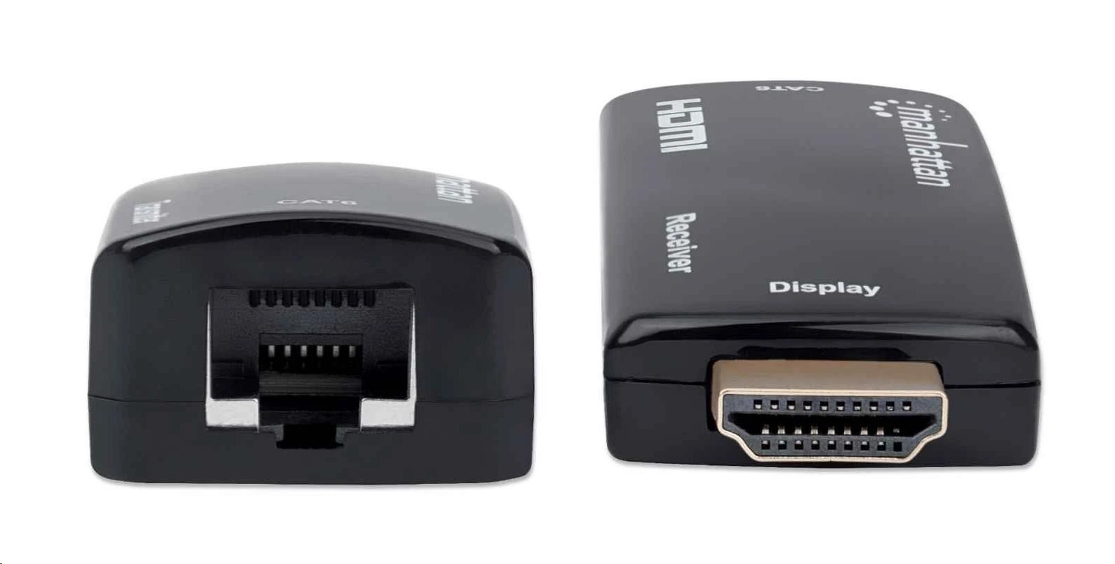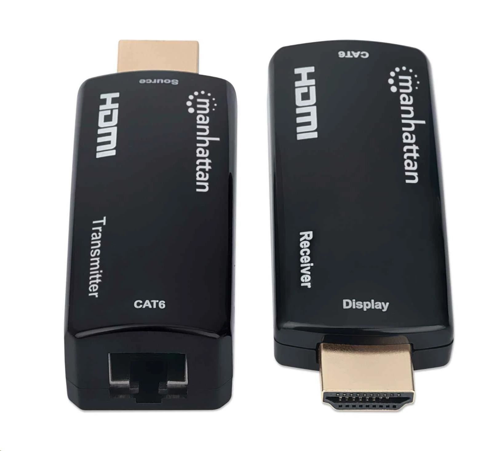Kompaktná súprava HDMI cez Ethernet 1080p od spoločnosti Manhattan dokáže pripojiť takmer akýkoľvek digitálny zdroj HDMI (napr.g., herná konzola [PlayStation®, Xbox® a ďalšie], prehrávač Blu-ray, satelitný prijímač, digitálny rekordér atď.) k HD displeju alebo projektoru na vzdialenosť až 60 m (196 ft.) s jedným ethernetovým káblom Cat6. Súprava poskytuje spoľahlivý prenos videa s rozlíšením 1080p@60 Hz a viackanálového zvuku na väčšie vzdialenosti ako samotné káble HDMI. Jeho tenký a kompaktný dizajn je ideálny na inštaláciu v stiesnených priestoroch alebo prakticky kdekoľvek.