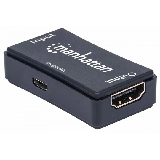 Manhattan 4K HDMI Repeater rozširuje dosah signálu HDMI dekódovaním a regeneráciou v rozlíšení 4K@60 Hz prakticky z akéhokoľvek zdroja HDMI (PlayStation, Xbox, Blu-ray prehrávač, satelitný prijímač, digitálny rekordér atď.) pomocou existujúcich káblov HDMI. Opakovač je navrhnutý na inštaláciu typu plug-and-play a zosilňuje slabé signály s cieľom znížiť alebo odstrániť šum, degradáciu alebo iskrenie obrazu na HD displeji alebo projektore. Súčasťou balenia je aj ďalší port USB na zvýšenie napájania zdrojov videa, ktoré potrebujú prekonávať väčšie vzdialenosti.