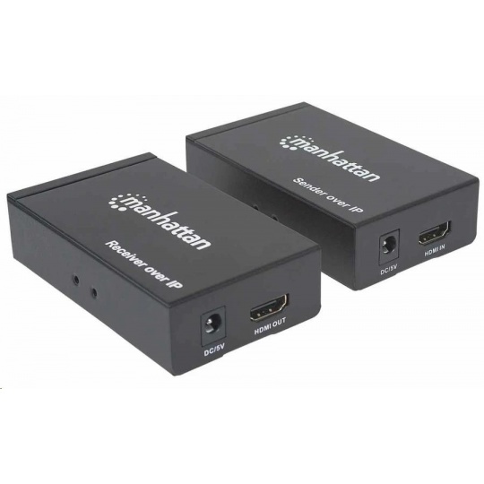 | Pripojenia | jedna samica HDMI, 19-pin (vysielač/prijímač) Jedna samica RJ45 (vysielač/prijímač) Jedna samica napájania 5 VDC, OD 5.5 mm / ID 2.1 mm (vysielač/prijímač) Dva 3.5 mm IR samica (vysielač/prijímač) |