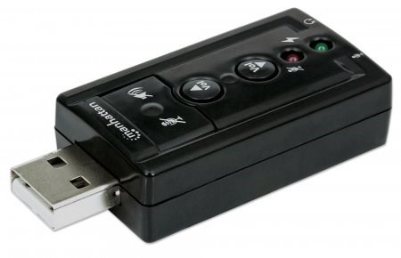 Ideálny pre stolové počítače, notebooky a netbooky, Manhattan Hi-Speed USB 3D 7.1 Zvukový adaptér okamžite vytvorí vstupné a výstupné porty pre mikrofón prostredníctvom ľubovoľného portu USB. Ľahko pripojte náhlavné súpravy, mikrofóny a reproduktory vybavené 3.5 mm káble, ktoré sú príliš krátke na to, aby pohodlne dosiahli na porty na nepohodlných alebo nevhodných miestach. Vďaka funkciám plug-and-play a hot-swap ľahko nahrádza nefunkčné zvukové karty, obchádza poškodené zvukové porty a zlepšuje prístup bez špeciálnych ovládačov alebo softvéru. Zabudovaný výkonový zosilňovač triedy B využíva napájanie zo zbernice USB, čím sa eliminuje potreba externých zdrojov energie alebo ďalších káblov. Podpora 3D zvuku a virtuálneho 7.1 priestorový zvuk a vstavané zvukové efekty s 10-pásmovým ekvalizérom poskytujú bohaté, vysokokvalitné zážitky so známym pohodlím a funkciami USB.