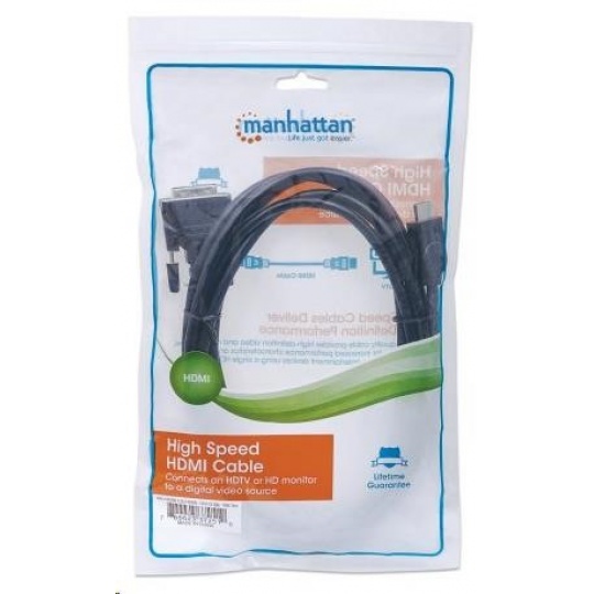 MANHATTAN HDMI samec - DVI-D 24+1 samec, dvojlinkové prepojenie, čierna farba, 3 m