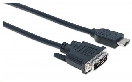 MANHATTAN HDMI samec - DVI-D 24+1 samec, dvojlinkové prepojenie, čierna farba, 3 m