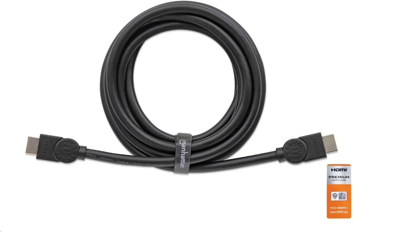 MANHATTAN Vysokorýchlostný kábel HDMI + Ethernet Premium, 3 m, čierny