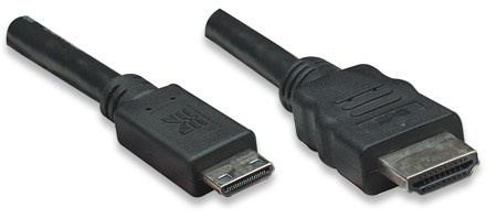 MANHATTAN Vysokorýchlostný kábel HDMI 3D, Mini HDMI Male to Male, tienený, čierny, 1,8 m