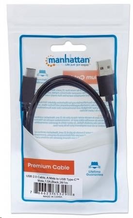 MANHATTAN USB kábel 2.0 C, C samec / A samec, 1 m, čierna